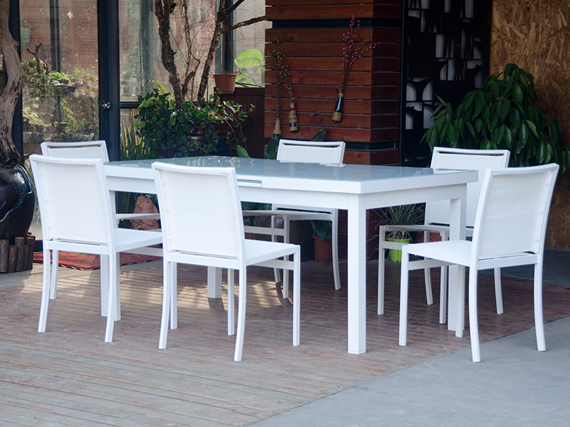 We have two our own factory. So we can offer the price and Custom aluminium uitschuifbare eettafel met zes stoelen YQ-028 directly.